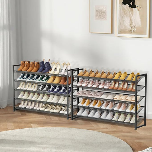 NEYCIL Large Shoe Rack 10 Tier Shoe Organizer, Heavy Duty Metal 5-Tier Stackable Shoe Storage Vertical Shoe Rack for Closet Front Door Entrance, Up to 62 Pairs, 44.8" W x 11.4" D x 71.2" H, Black
