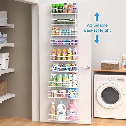 VyGrow 12.3" W Narrow Over the Door Pantry Organizer, 8-Tier Over the Door Organizer with Adjustable Basket, Pantry Door Organization for Pantry Kitchen Storage Room Spice Rack, White