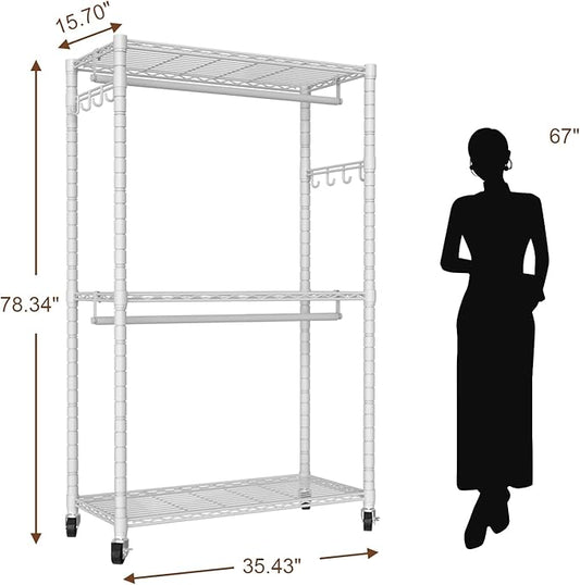 VyGrow Clothes Rack for Hanging Clothes, Adjustable Heavy Duty Clothing Rack with 4 Hang Rods & 7 Shelves, Load 800LBS, 70.47" L x 13.58" W x 76.77" H, White