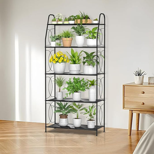 VyGrow 5 Tier Plant Stand Indoor Outdoor, Heavy Duty Plant Shelf, Metal Mesh Tall Plant Stands Holder Rack for Living Room Balcony and Garden, Black