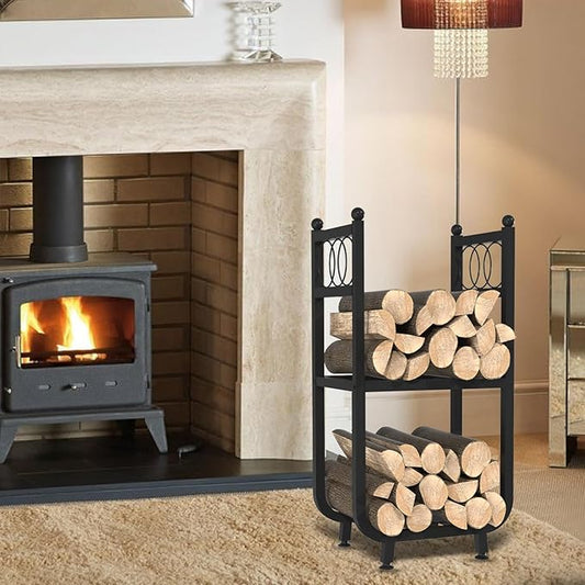 VyGrow Firewood Rack for Indoor Outdoor, 2-Tier Firewood Holder, Heavy Duty Wood Rack for Fireplace, Outdoor Patio, Fire Pit, Black
