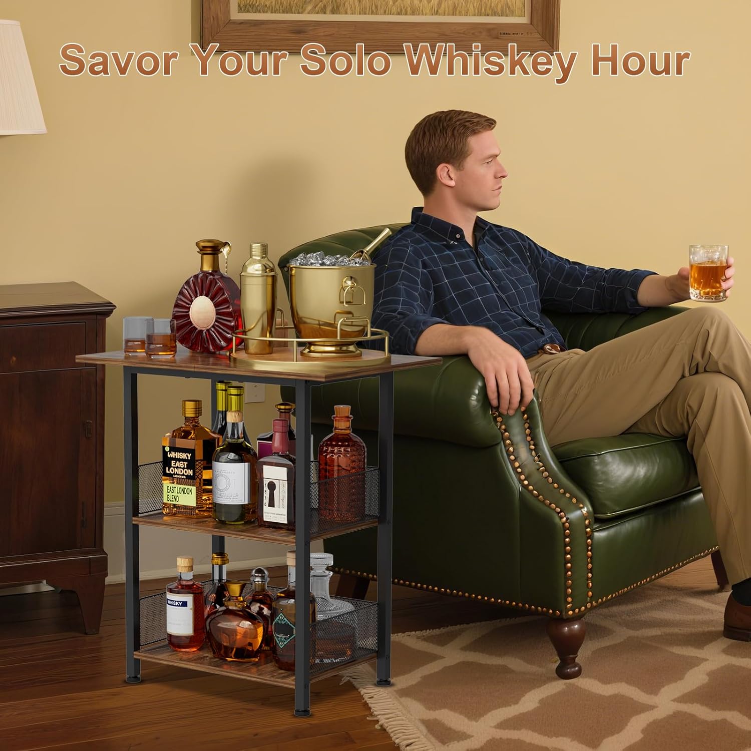 - 3-TIER MINI BAR: This bar table measures 17.3"L x 11.8"D x 27.3"H – compact enough to fit perfectly in any home corner, creating your own personal mini-bar. Its slim profile maximizes small spaces without sacrificing style, giving you a stylish spot for glassware, bottles, and bar essentials.