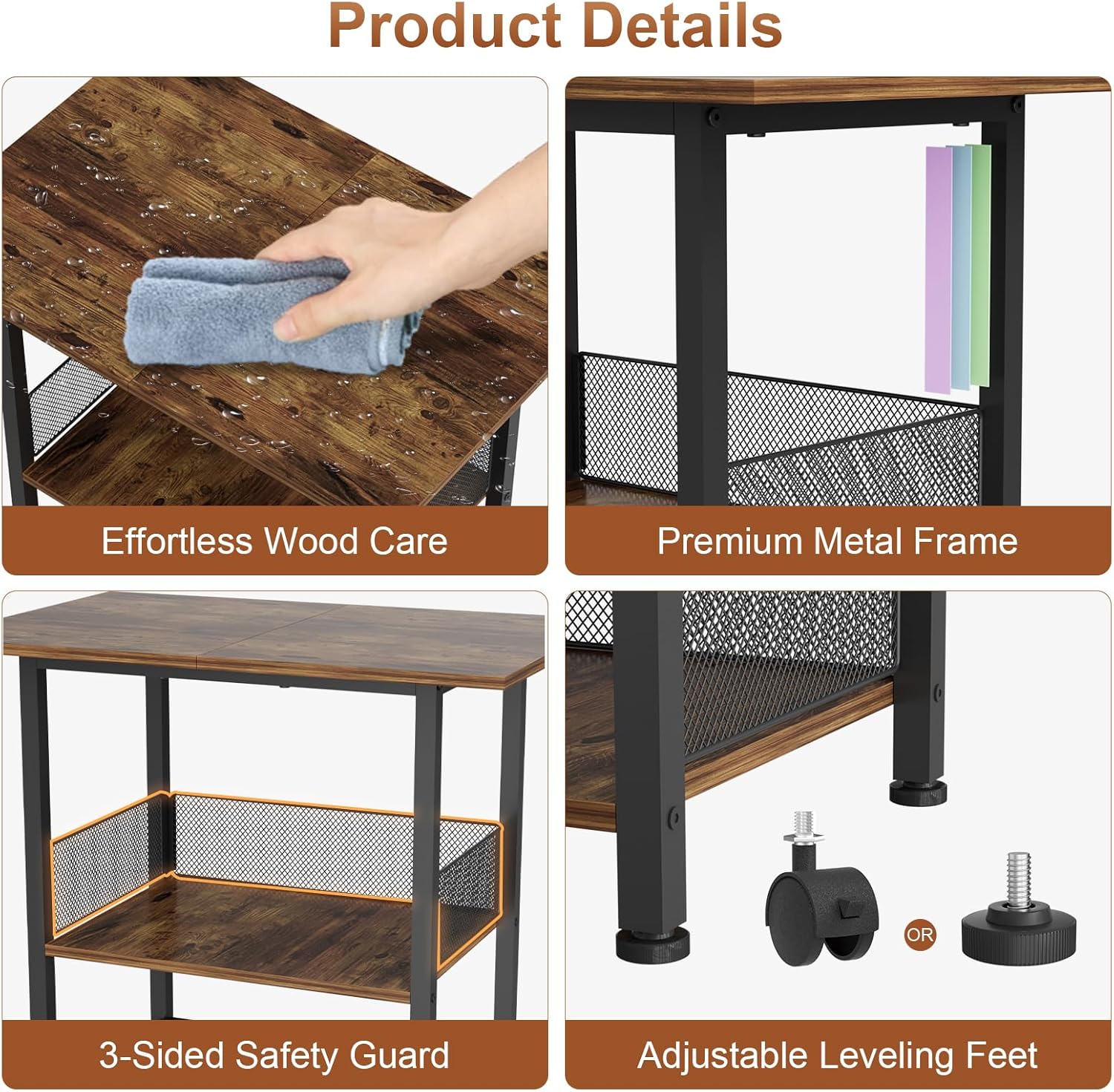 - STURDY DESIGN & ANTI-FALL PROTECTION: Crafted from premium MDF and a robust matte black metal frame, this bar table delivers both stability and style. The 3-sided mesh guardrails securely prevents bottle tipping, while allowing an elegant display of your collection.