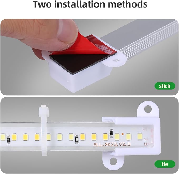 - Easy installation and flexible placement: Equipped with cable ties and tape, these two installation methods provide a wide lighting coverage area, suitable for shelves, offices, indoors, plant racks, greenhouses and other places, equipped with a 1.5-meter long wire, flexible placement to ensure convenient access to power.