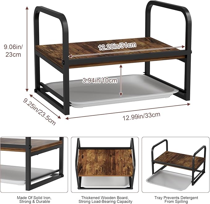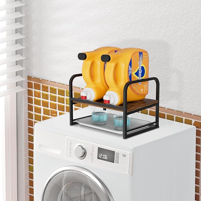 - 【High-Quality Materials】: This laundry detergent holder shelf is designed with a combination of solid wood and a metal iron frame. The wood has a beautiful and solid texture, ensuring a dry and hygienic storage environment for laundry supplies. The iron frame has been carefully processed and has excellent anti-rust and corrosion resistance, with strong load-bearing capacity.