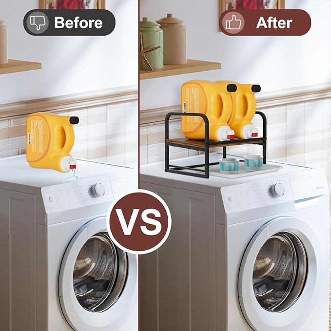 - 【Retro-style Multifunctional Laundry Liquid Detergent Organizer】: It can hold two bottles of liquid laundry detergent, making your laundry room space neater and cleaner. It can be used as a laundry room decoration to store other laundry supplies, such as laundry soap, bleach, brushes, and gloves.