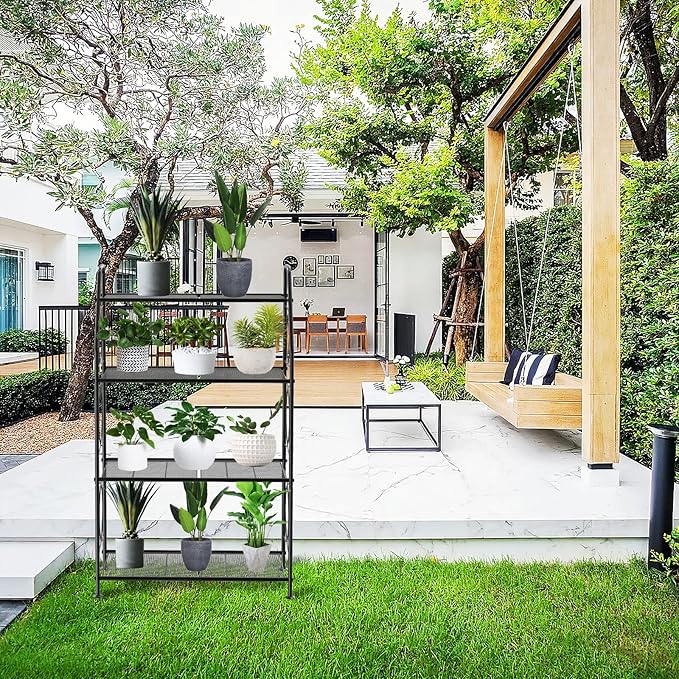 VyGrow Plant Stand, 4 Tier Plant Shelf for Indoor Outdoor, Heavy Duty Metal Tall Plant Stands Holder Rack for Living Room Balcony and Garden, Black