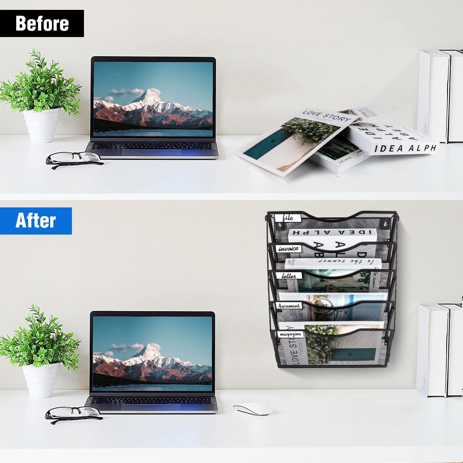 - 【High Quality Mesh】The BOHDK wall file organizer is made of high quality coated mesh metal which is sturdy enough to offer you a long term service life for your home and office.